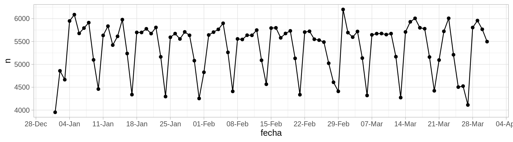 select(fecha, n) |>