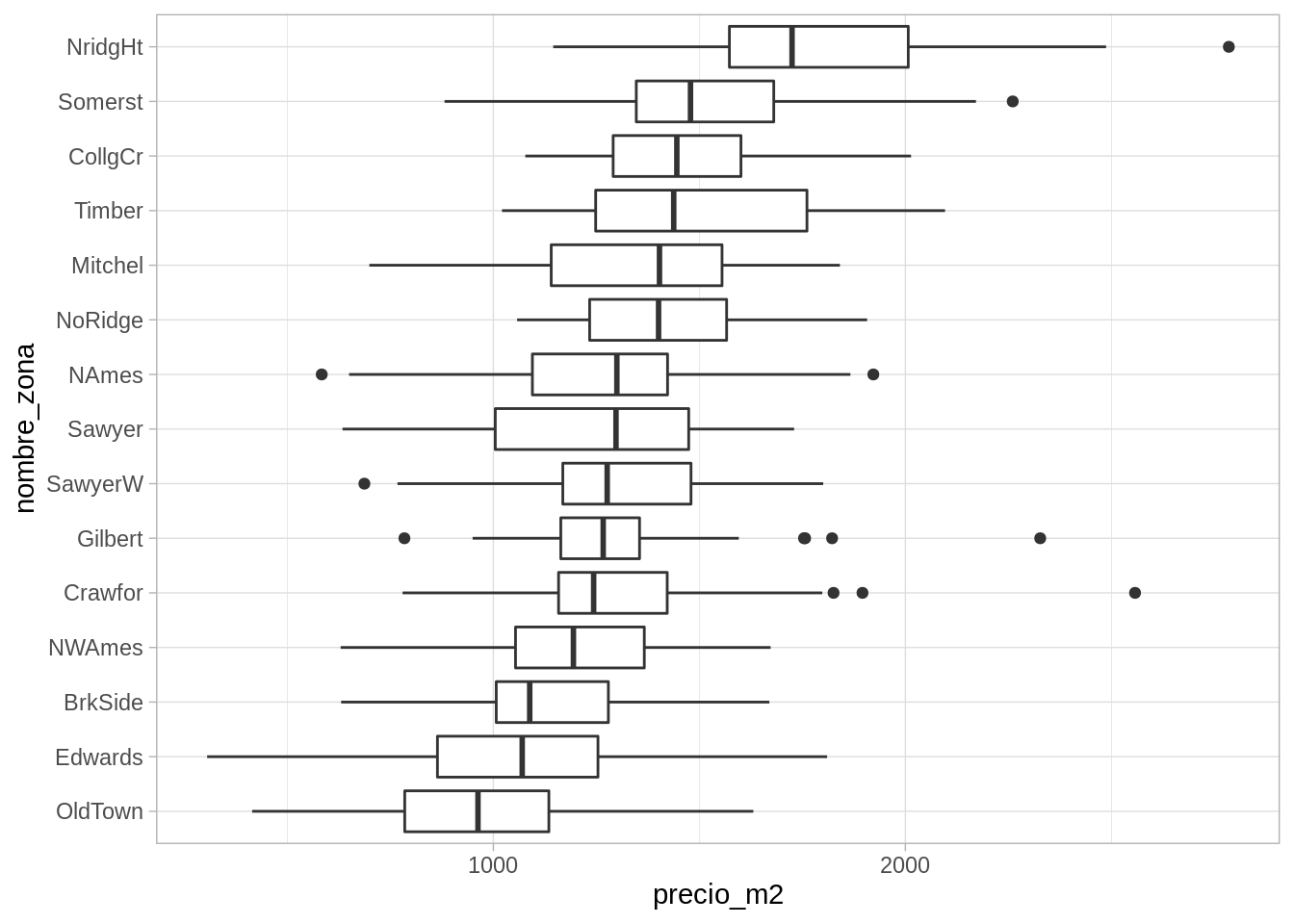 ggplot(casas, aes(x = nombre_zona, y = precio_m2)) +geom_boxplot() +coord_flip()