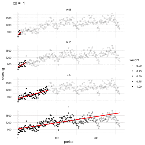 Usualmente también ponderamos más alto valores que están cerca de \(x\) y ponderamos menos valores más lejanos a \(x\)