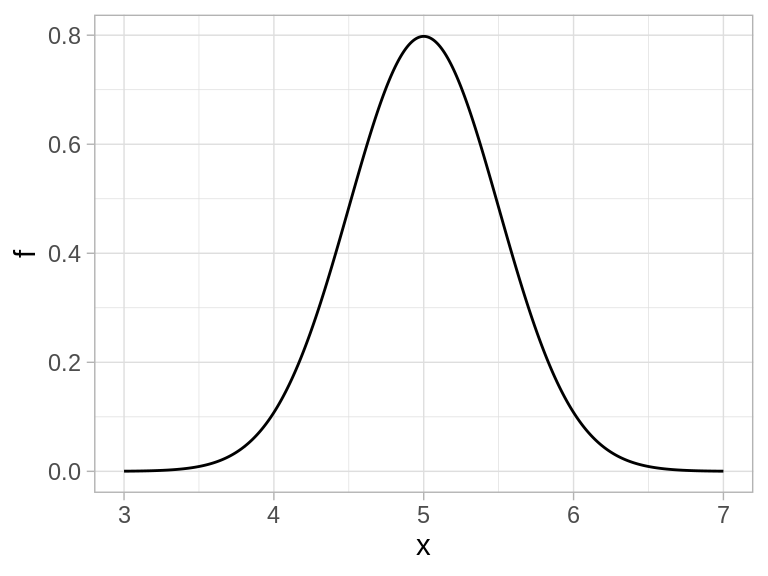 Por ejemplo, si escogemos \(\mu=5\) y \(\sigma = 0.5\), obtenemos: