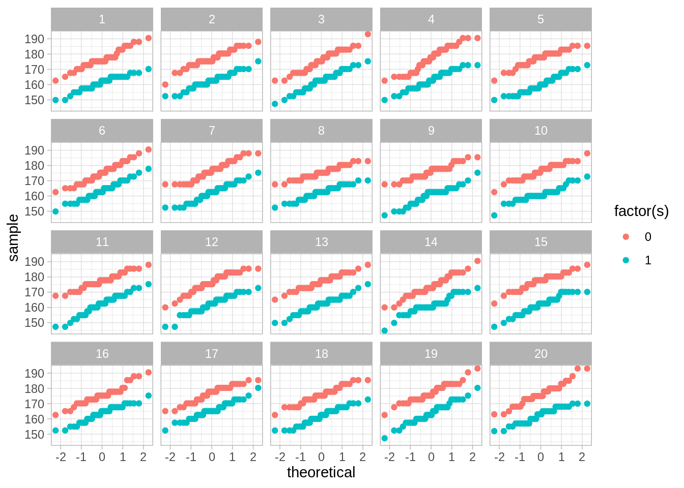 Y notamos que los cuantiles no corresponden, pero el espaciamiento entre los cuantiles de los datos y los teóricos de la normal estándar es el mismo. Quiere decir que estas dos distribuciones tienen la misma forma, aunque estén escaladas y centradas en distintos valores.