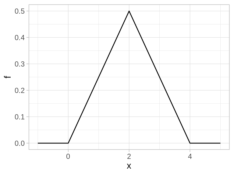 Supongamos que tenemos una variable aleatoria que tiene mediana 2, y puede tomar valores entre 0 y 4. Podríamos definir una densidad como sigue: Si \(x\) está entre 0 y 2, entonces